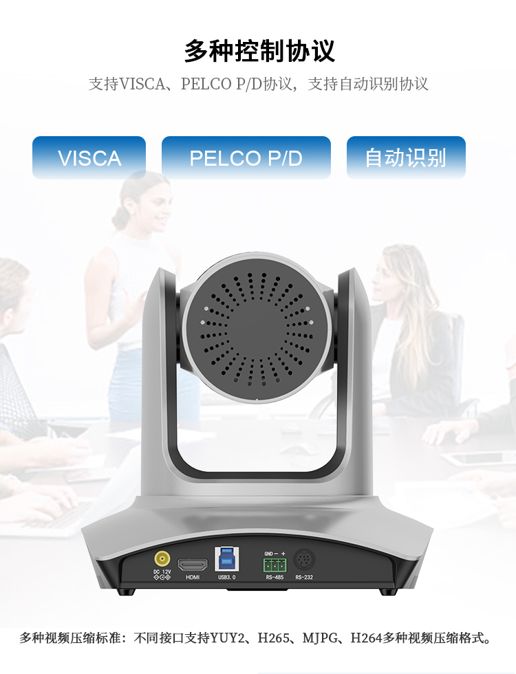 通讯接口 | 1路,RS232 IN:8针小型DIN,最大距离30米,VISCA/Pelco-D/Pelco-P协议 |