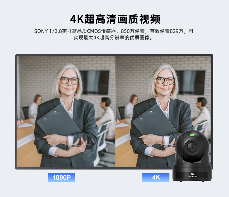 采用SONY 1/2.8 英寸850万像素高品质图像传感器,有效像素829万,可实现最大3840x2160超高分辨率的优质图像。