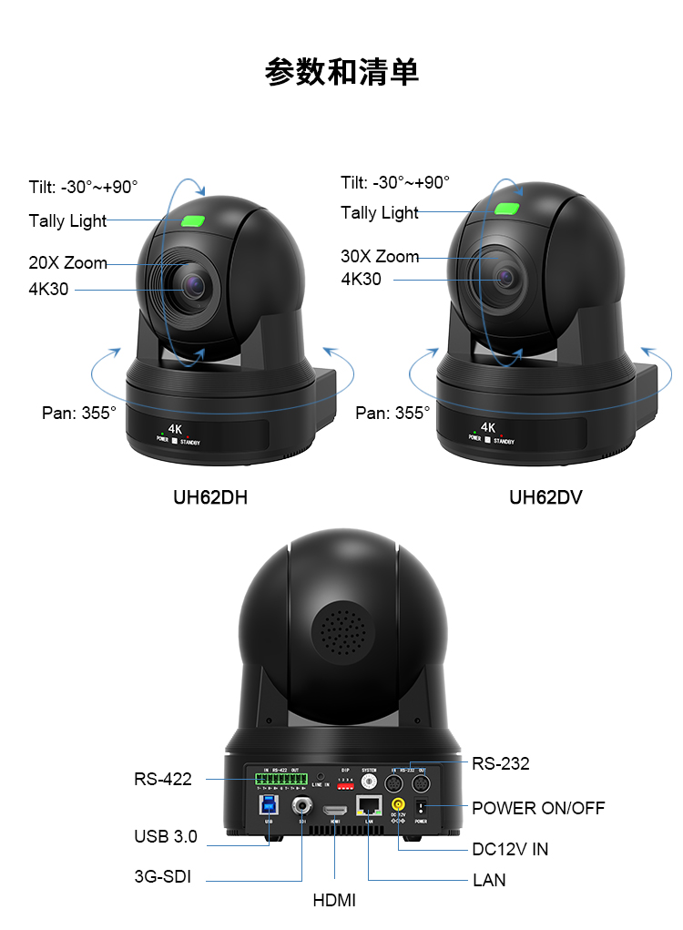 UH62DH/DV 4K超高清云台摄像机