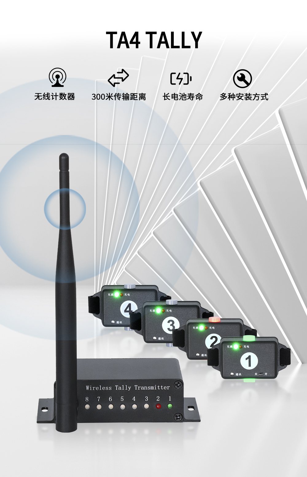 信号指示灯状态 | 蓝色指示灯:收到主机Tally信号闪烁;红色指示灯:不充电时常亮电量低于40%;绿色指示灯:不充电时常亮电量低于80%。 |