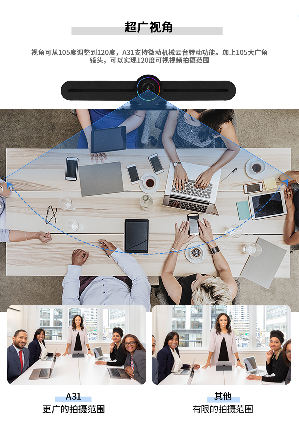 智能应用 | 自动取景、数字变倍,音频跟踪(仅A31支持) |