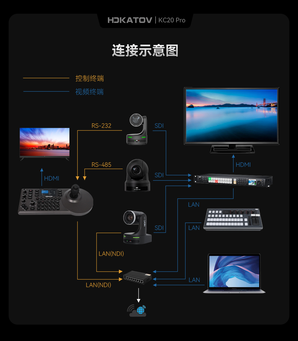控制接口 | RJ45(支持POE和NDI®|HX2(选配))、RS-232、RS-422/485 |