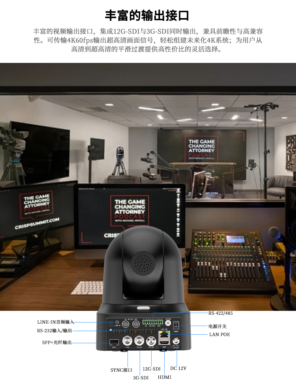 SDI接口 | 12G-SDI*1路、3G-SDI*1路、SYNC(Genlock)*1路 | |