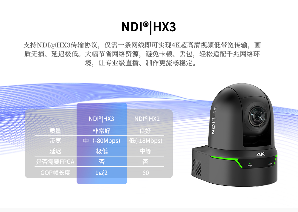 支持协议 | TCP/IP, HTTP, RTSP, RTMP(S), SRT, ONVIF, DHCP, VISCA Over IP, Free D, NDI®|HX3(可选) | |