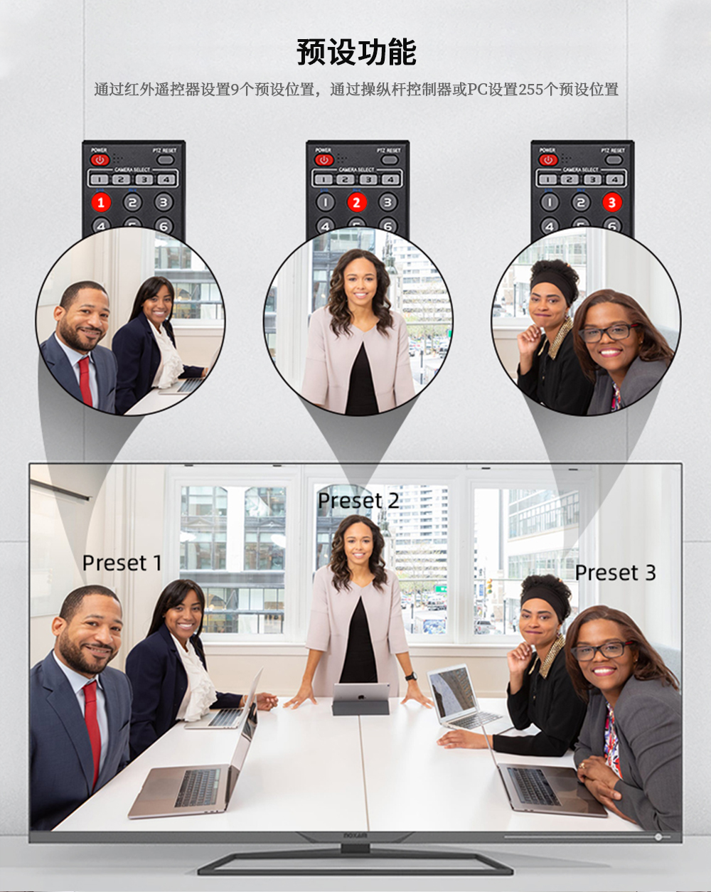 预置位数量 | 遥控可设9个,键盘最多可设255个预置位 |