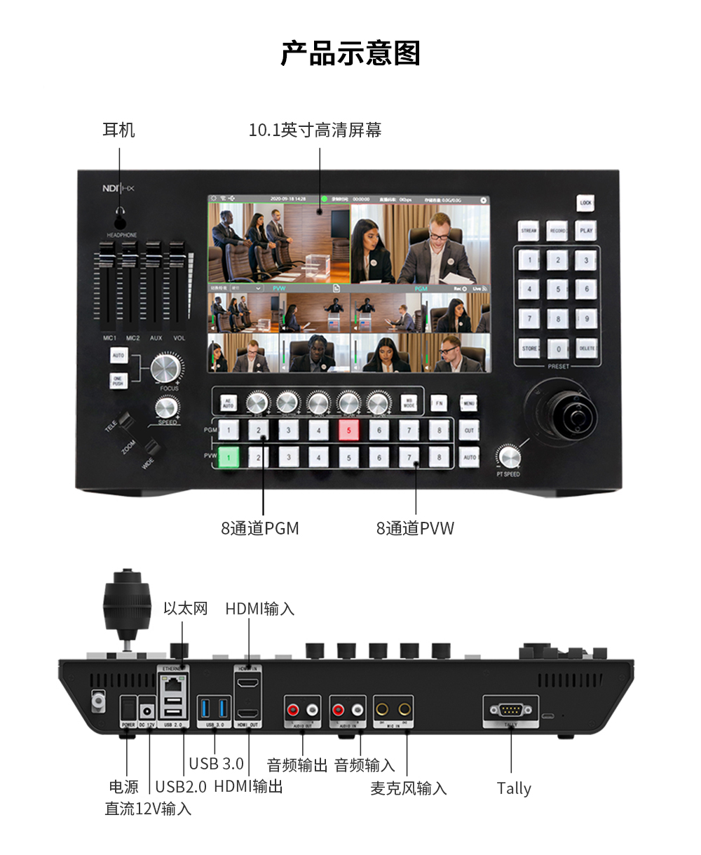 视频输入接口 | 8路IP(可选NDI HX)、1路A类HDMI 1.4 |